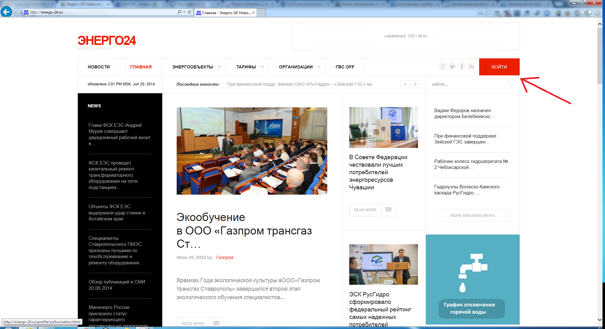 переходим на главную страницу http://energo-24.ru/ и жмем кнопку "ВОЙТИ"